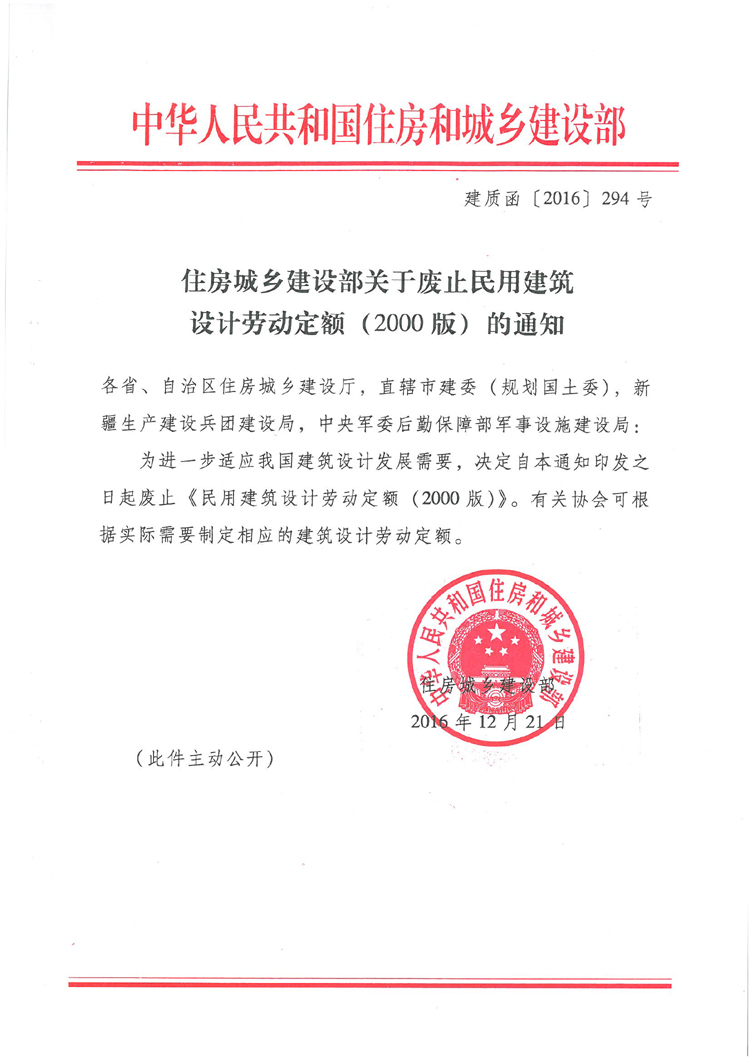 住房城鄉建設部關(guān)于印發(fā)全國建筑設計周期定額(2016版)的通知