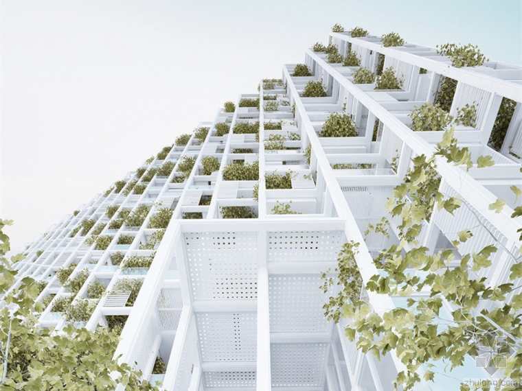 penda首先將一棟建筑中的必要元素——結構、墻體、外立面、天花、地面、基礎設施、陽(yáng)臺和景觀(guān)等要素從傳統的整體思維中分解出來(lái)。然后從一個(gè)模塊化的格構系統獲得靈感,在新的格構系統中只有網(wǎng)格結構和基礎設施是固定的部分。而其他的要素都可以通過(guò)工廠(chǎng)預制進(jìn)行模塊化加工。這些模塊可以為客戶(hù)提供一份目錄,業(yè)主可從產(chǎn)品目錄中選取這些模塊。模塊范圍包括不同的地面單元、外立面單元、欄桿陽(yáng)臺以及供植物生長(cháng)的豐富多樣的花盆等??蛻?hù)可以任意選擇符合他們自己品位的元素進(jìn)行搭配。penda希望為業(yè)主提供的是一個(gè)工具,使他們成為自己公寓的設計者。