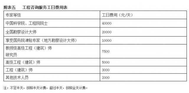 注1:專(zhuān)家等級相應工日費用詳見(jiàn)附表五《工程咨詢(xún)服務(wù)工日費用表》