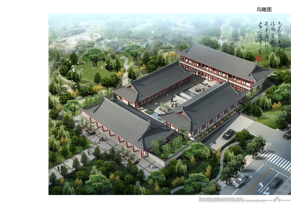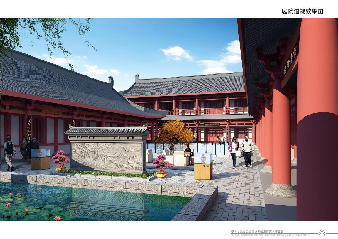 文昌湖公園位于費縣自由路上,地處河邊。而儒林苑則是在文昌湖公園里修建的一處休息用的庭院。該處庭院在設計初期選擇了多種建筑樣式,最后定格在四合院的建筑風(fēng)格上。