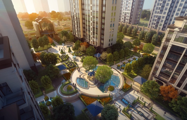 泰爾·書(shū)香頌項目在設計中,以中軸線(xiàn)呈現兩翼規整對仗,營(yíng)造出縱深尺度宏大的莊嚴與氣勢,突出尊榮華貴的氛圍,利于減少戶(hù)型種類(lèi),減少施工難度,利于打造主次分明的景觀(guān)系統。