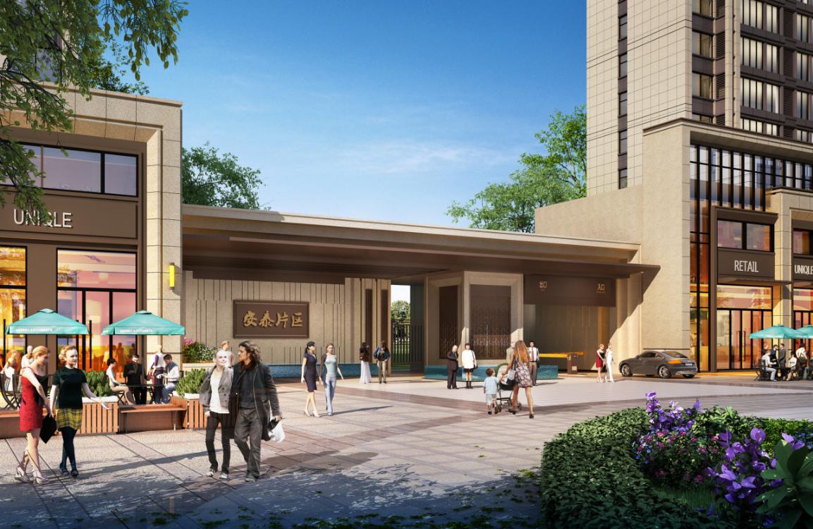 本案采用現代建筑風(fēng)格,以具有濃厚地域特色的傳統文化為根基,融入西方文化,把亞洲元素植入到現代建筑語(yǔ)系,將傳統意境和現代風(fēng)格對稱(chēng)運用,用現代設計來(lái)隱喻中國傳統。結合周邊建筑的特點(diǎn),設計為整體稍偏暖色調,外立面采用米黃色真石漆,沒(méi)有復雜體量的堆砌,只是在簡(jiǎn)單的體量上憑借精致構件加以點(diǎn)綴。強調面的實(shí)體作用和玻璃的虛化作用,形成對比。商業(yè)體塊感更強一些,在心理感受上既給予人們質(zhì)樸、親切的感受,又結合了現代建筑潔凈簡(jiǎn)單的特點(diǎn)。